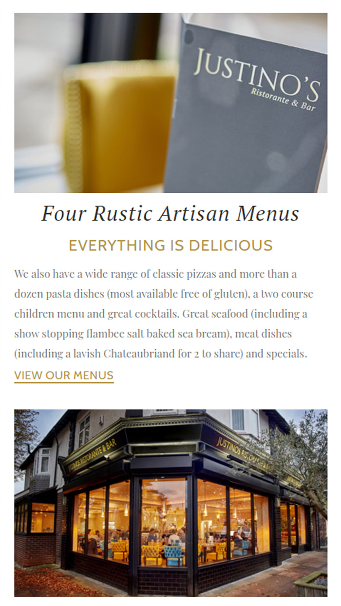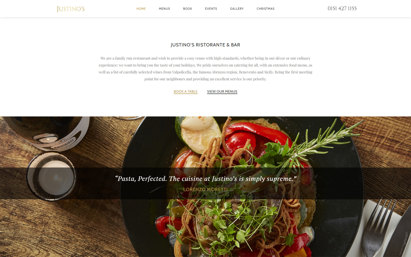 The Justino’s team approached us for a website that showcased their interiors, food and upcoming events.