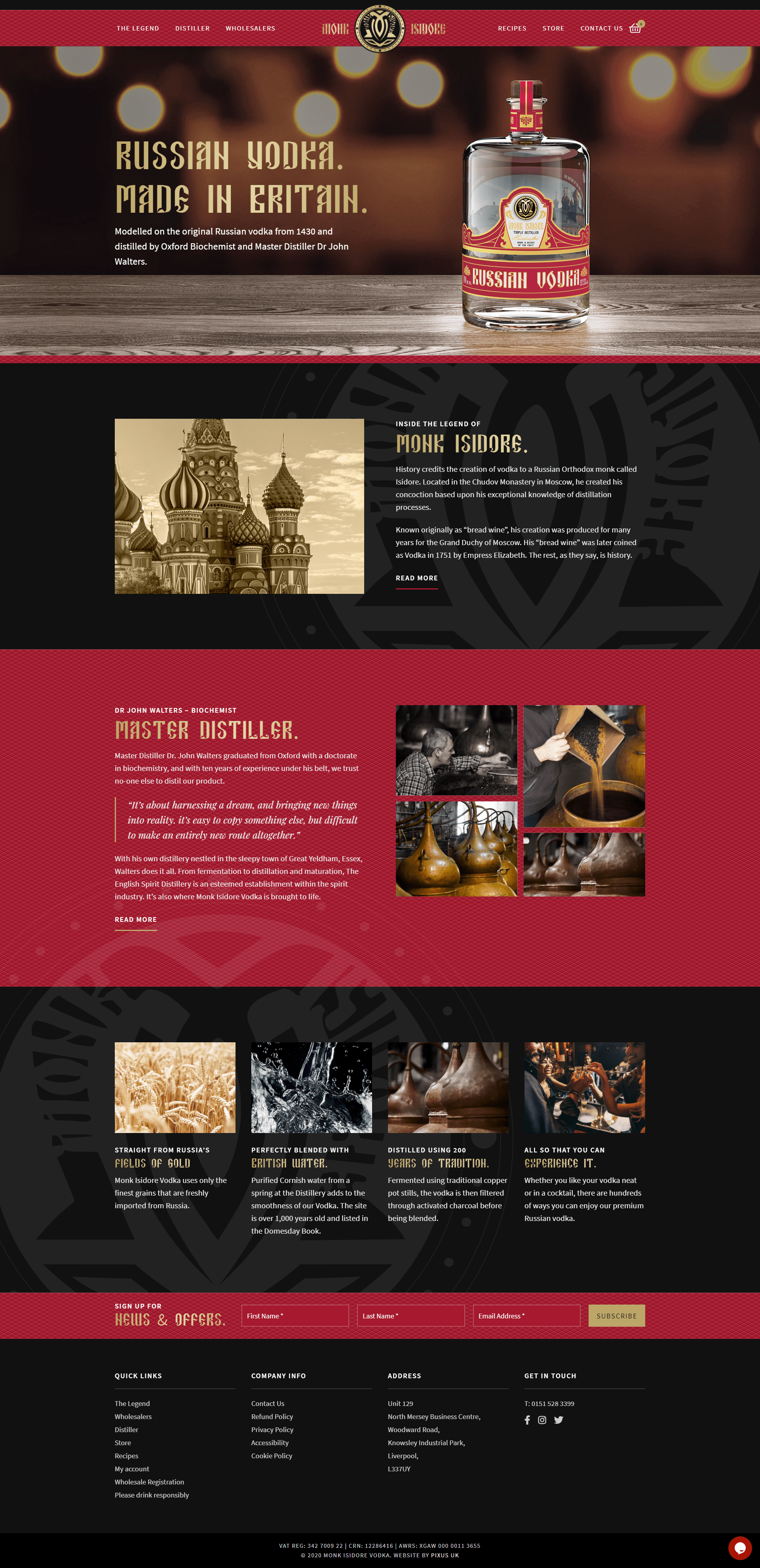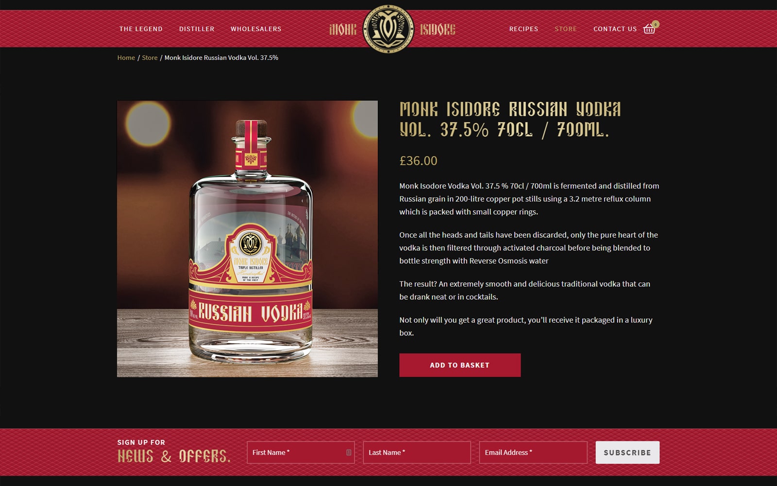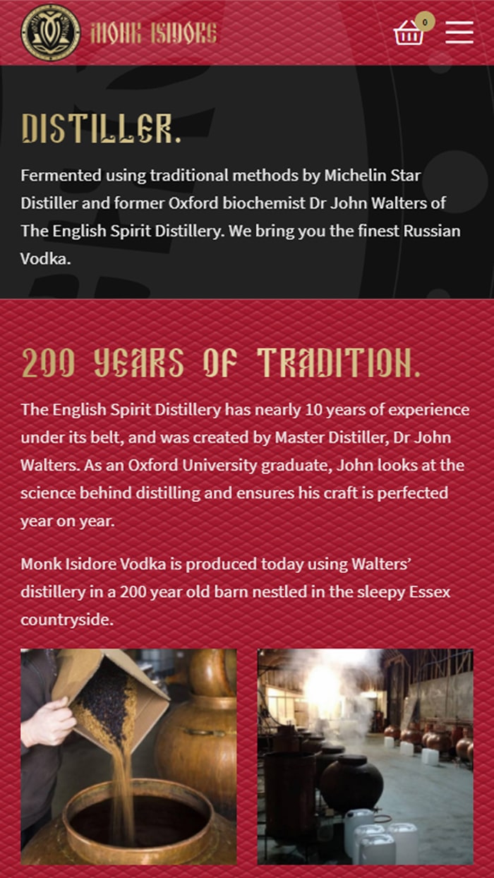 Working alongside Michelin Star Distiller and former Oxford biochemist Dr John Walters, Monk Isidore vodka is modelled from original 15th-century Russian vodka.