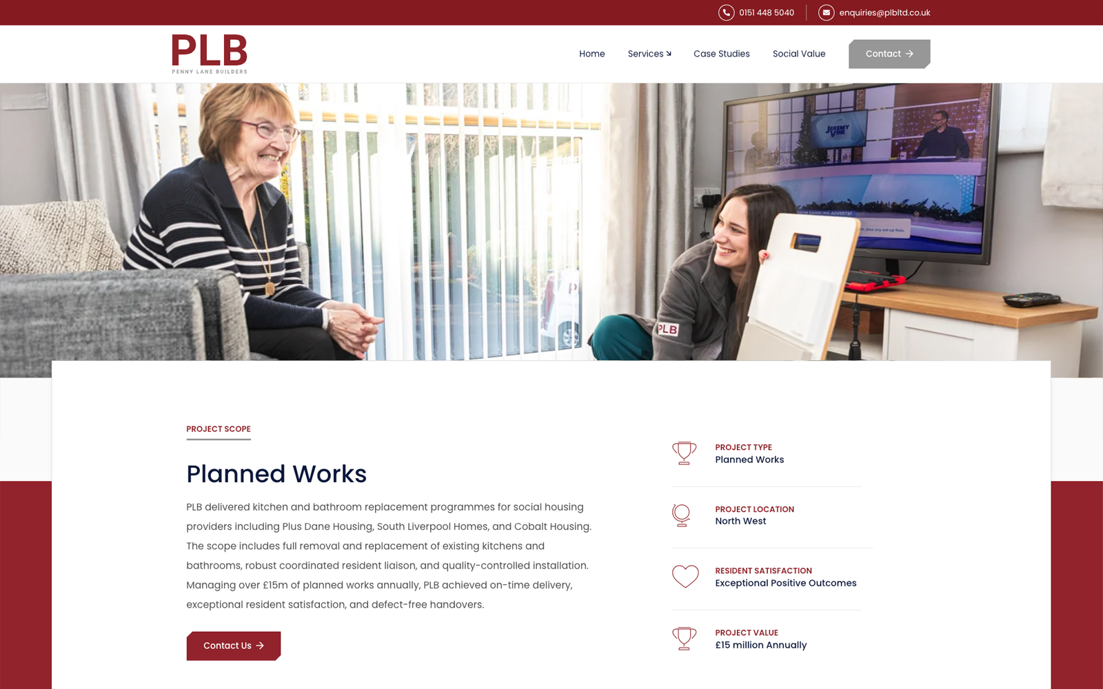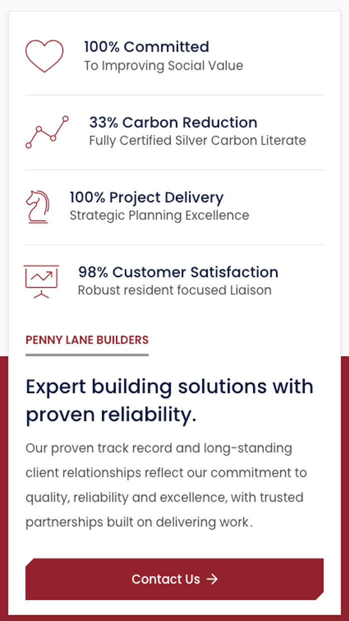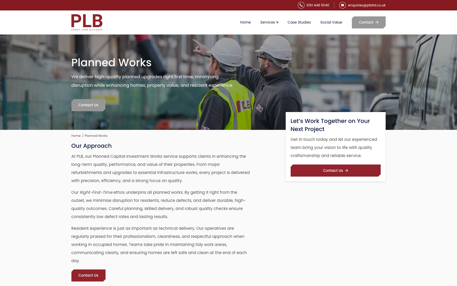 We’re proud to share the launch of the newly designed website for Penny Lane Builders, a long-established building contractor serving social housing clients across the North West since 1996. The new site brings PLB’s broad range of services — from repairs and maintenance to developments — into a modern, user-friendly digital experience that clearly reflects their expertise and commitment to quality and community impact. Our design focuses on improving clarity, usability and engagement, making it easier for clients and stakeholders to explore PLB’s services, values and ongoing projects. You can see the finished result at www.plbltd.co.uk