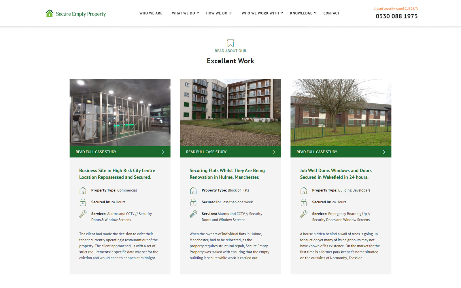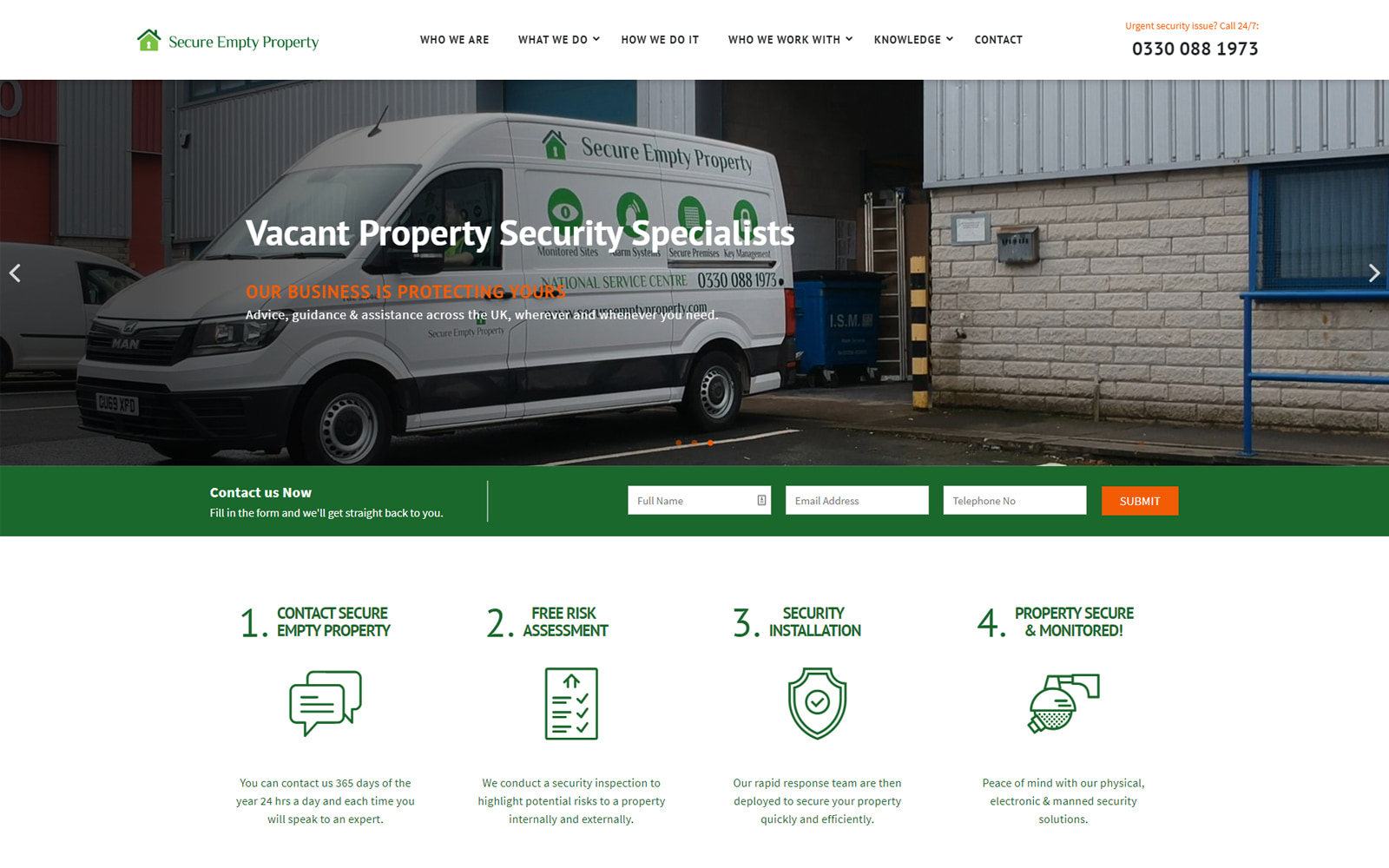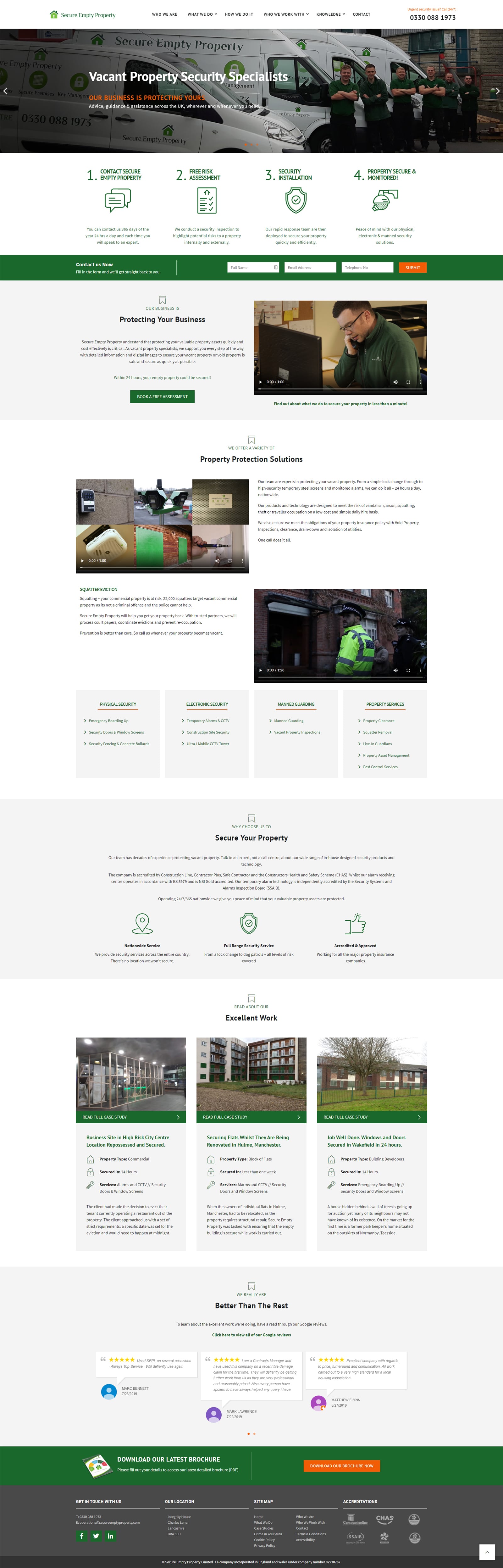 The Secure Empty Property team approached us with an idea for their new website. Their old website had a mixture of page layouts and looked cluttered. We were tasked with creating a design that was easy to navigate and modern in scope.