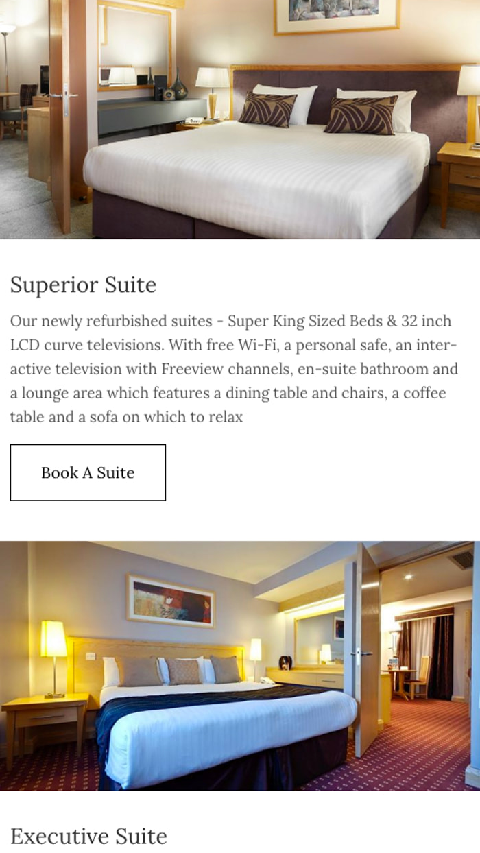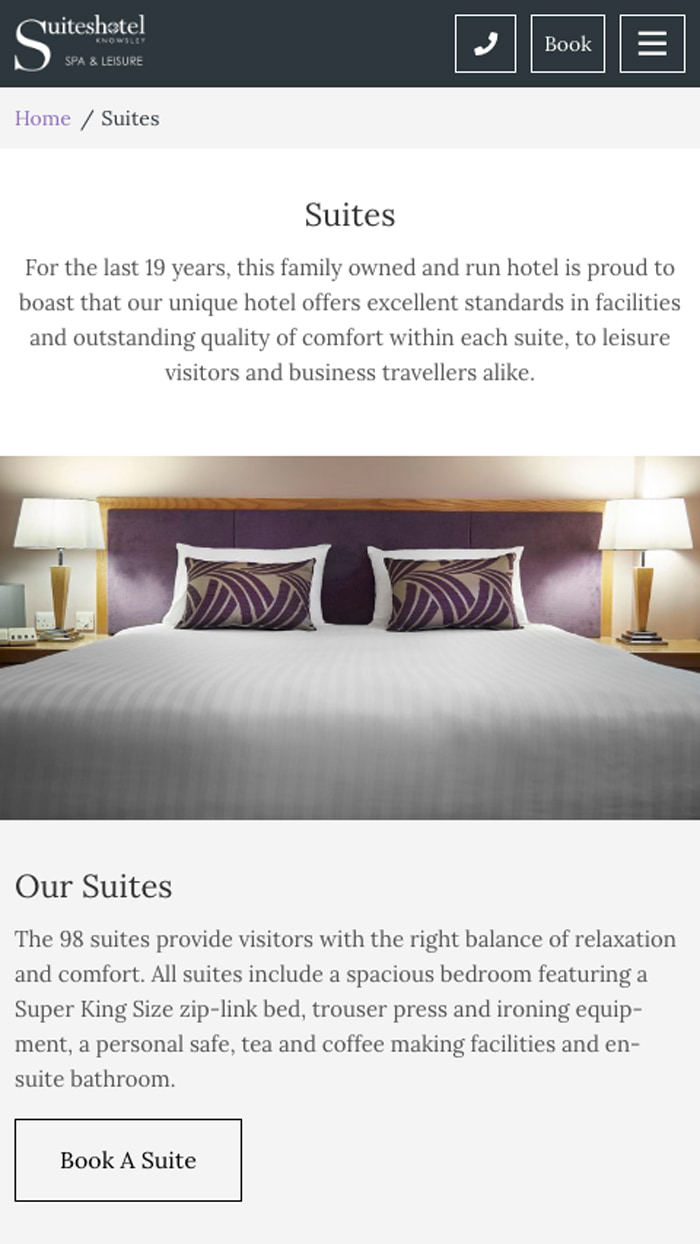 The team at the Suites Hotel & Spa approached us with a goal to create a new website to reflect the quality of their hotel, as their older design was cluttered and difficult to navigate.