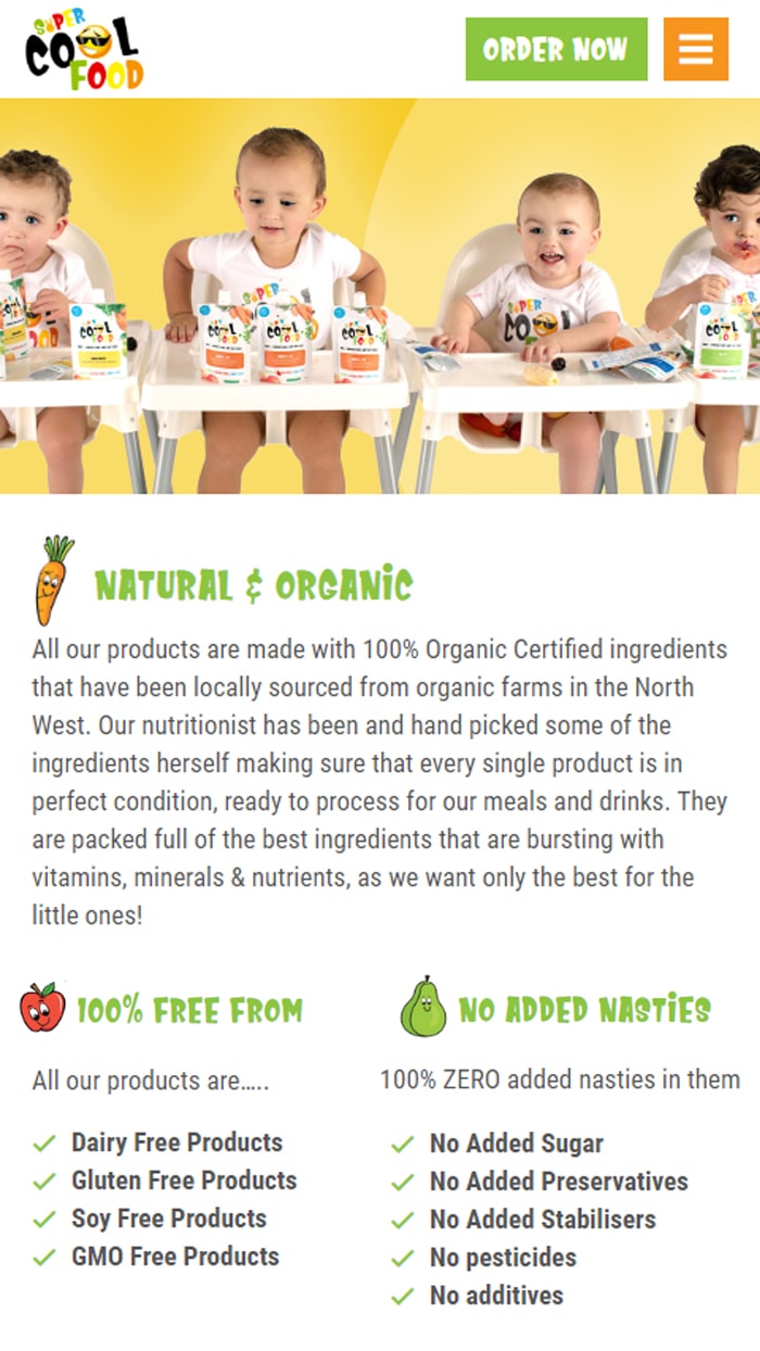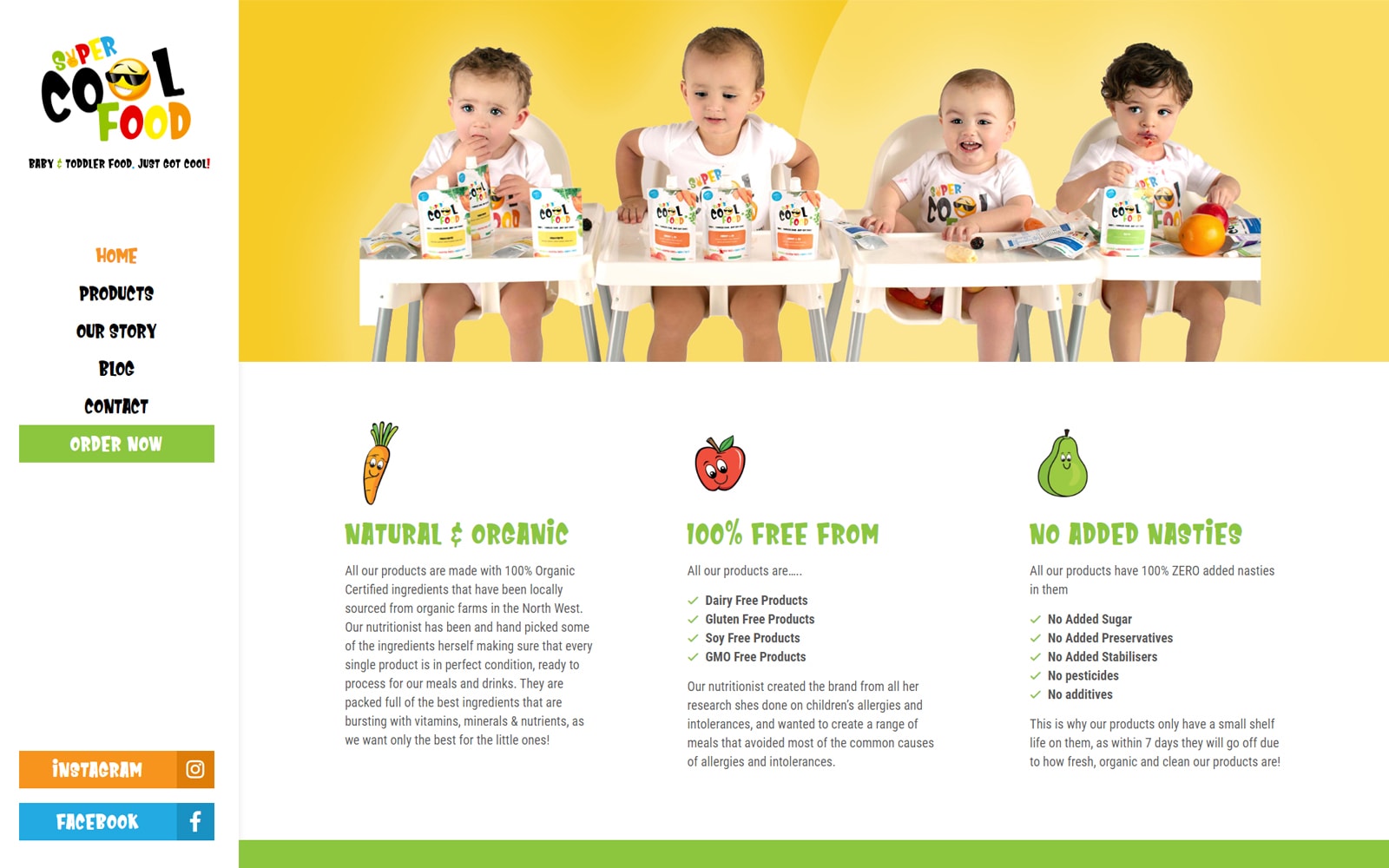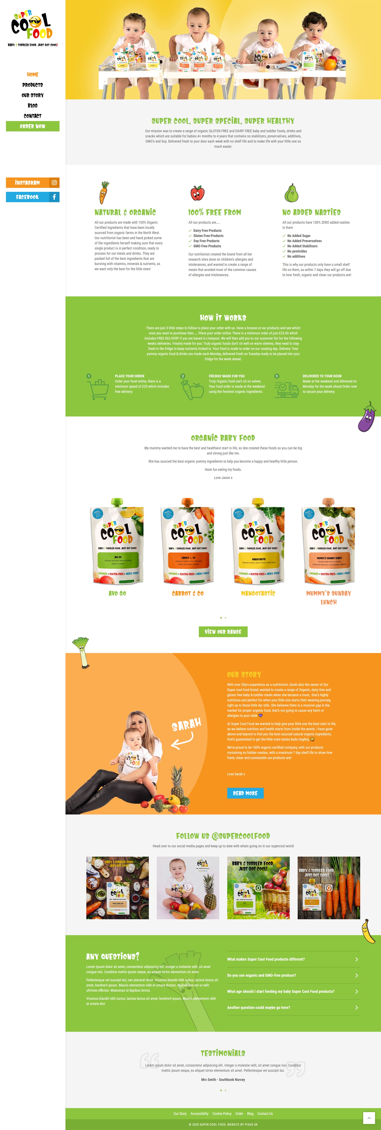 A colourful WordPress website that allows customers to checkout securely using custom gravity forms, browse easily from a left navigation and explore a variety of pages featuring brand colours, logos and designs.