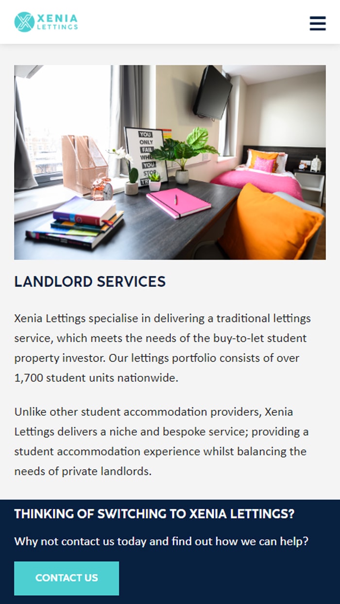 Not only does the new website for Xenia Lettings stand out, but it also features brand colours, adjustable content blocks and a news section which gives users a closer look into the brand. The homepage is host to a number of calls to action, and the user experience has allowed conversions to increase since the website was pushed live.